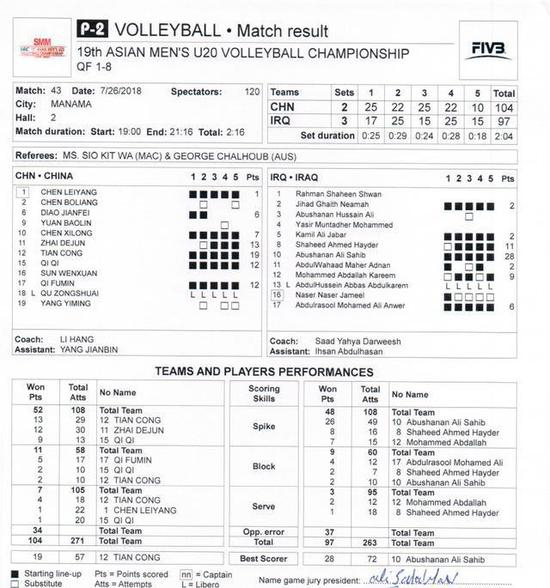 北京时间2018年7月27日凌晨,巴林麦纳麦U20亚锦赛(以下简称亚青赛)1/4决赛中国男排2-3负于伊拉克无缘四强,5局比分为25-17、22-25、25-15、22-25、10-15。这也意味着中国男排将无缘2019世青赛。