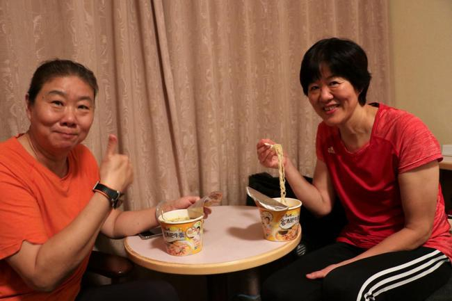 这个夜晚老姐俩聊得很开心,聊饿了,两人就都来了碗康师傅金汤肥牛面。郎洪说,这个寓意好,金汤嘛,有金牌的意思在里面,而且吃面可以攒捞劲儿。郎平说,现在夜里饿的时候都喜欢泡碗面吃,吃完感觉特别舒服,特别满足。在两人挥别时,郎洪也一再心疼地叮嘱郎平要好好保护身体,别太操劳,郎平也一直笑着回应好的。其实姐妹俩的这一幕在以前很多时候都出现过,这也是她们深厚感情的一个缩影。