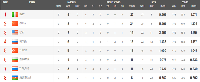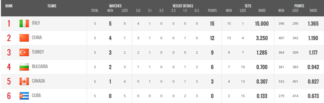 女排世锦赛即时排名:中国小组头名 4强再战意大利