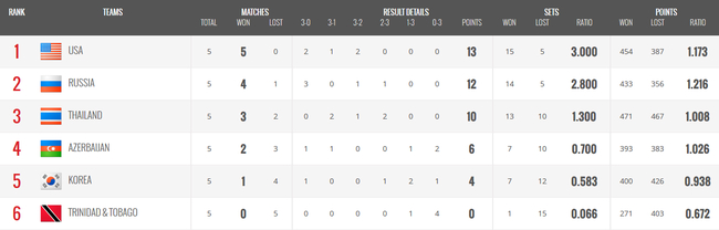 C组:美国、俄罗斯、泰国、阿塞拜疆出线