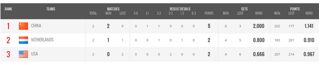 H组:中国和荷兰小组前两名,美国出局