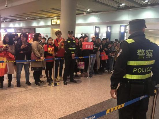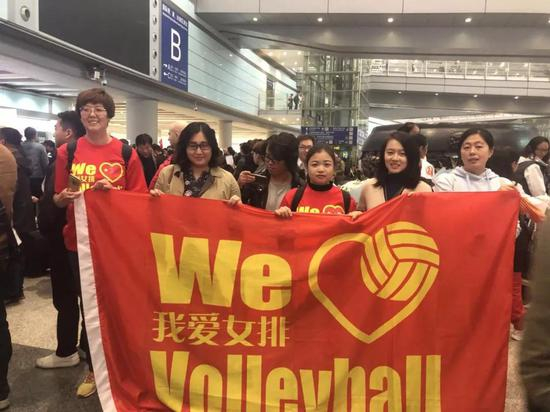 得知郎导和姑娘们今天要回来,除了“我爱女排”球迷,还有不少球迷自发组织来接机。
