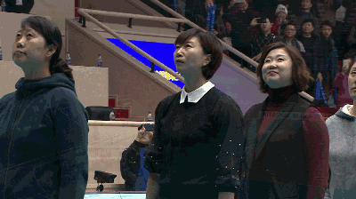 比赛开始前,天津女排联赛冠军旗升旗仪式举行,16 年间取得冠军的功勋教练员和队员们到场。当 11 面冠军旗在场馆内徐徐升起时,全场的掌声送给了这些队员和教练。