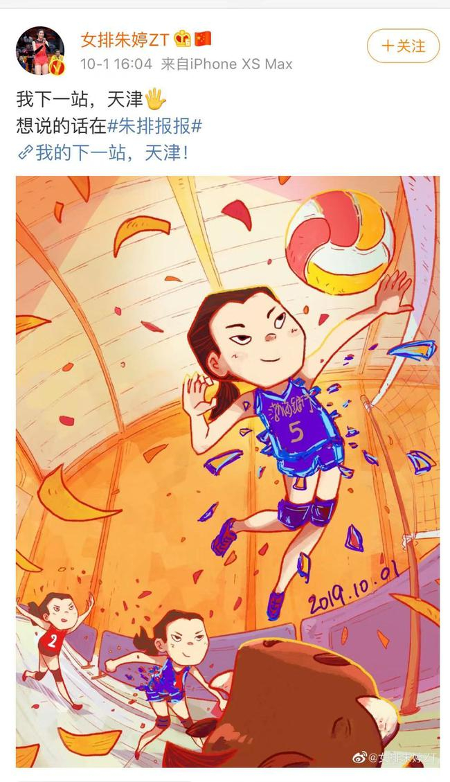 朱婷发表名为《我的下一站,天津!》的文章,表达了内心的愿望——