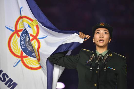 10月18日,中国女子排球运动员袁心玥代表全体运动员宣誓。