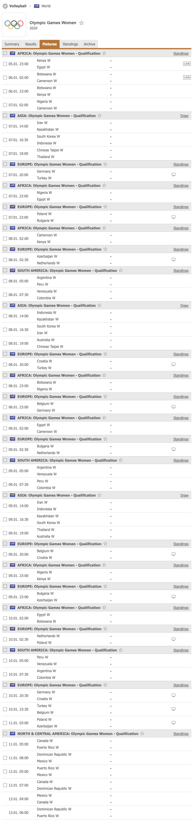 2020年东京奥运会排球资格赛五大协会女排赛程表