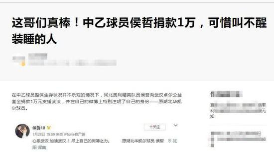 其二,哪怕相同的捐款数额,对身价、地位截然不同的文体明星,含金量也不一样,不能画上等号。简单的数字比大小流于粗暴,缺乏科学性。作为前武汉卓尔主帅、现国足主帅,李铁个人捐款100万元;来自中乙联赛的球员侯哲,向公益基金捐款1万元,并特别强调自己是原湖北华凯尔球员。