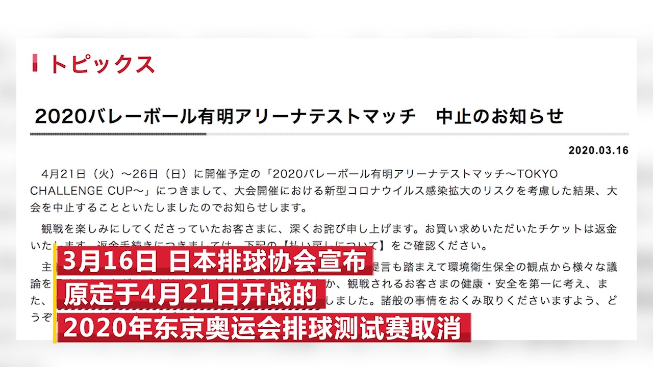 东京奥运排球测试赛取消