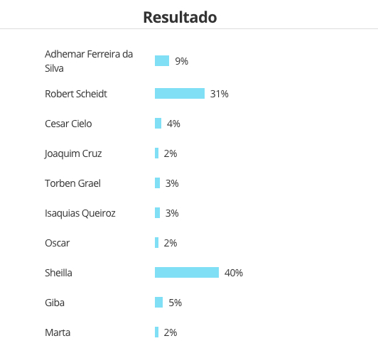 最终,谢拉以压倒性优势高居第一位,排在第二的是沙伊特(31%),第三则是费雷拉-达-席尔瓦(9%)。
