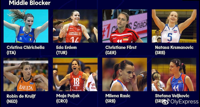 副攻:波尔雅克(克罗地亚,第一副攻)、拉西奇(塞尔维亚,第二副攻)