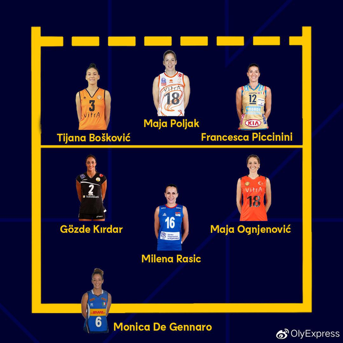 欧排联日前组织了一场名教头在线讨论,最终评选出了三位著名教练心目中的过去10年(2010-2019)欧洲女排最佳阵容。
