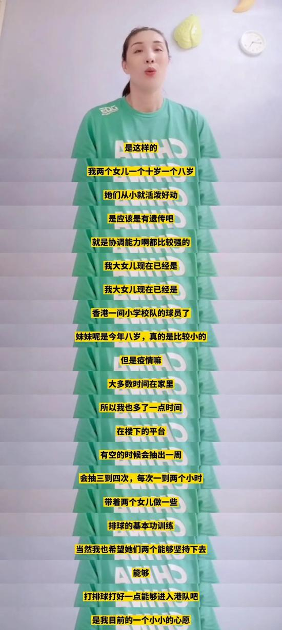 孙玥姐的两个可爱的女儿从小就活泼好动,她也会带着她们做一些基本的排球训练。