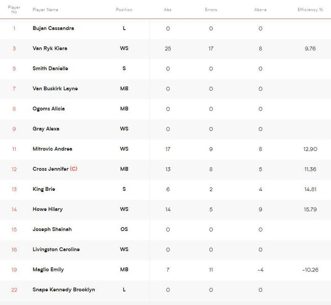 加拿大队的3号基耶尔-范-伊卡拿到25分,全场最高,17次失误同样全场最高。另外米特洛维奇拿到17分,克罗斯-詹妮弗13分,霍文-希拉里14分,总计四人得分上双。