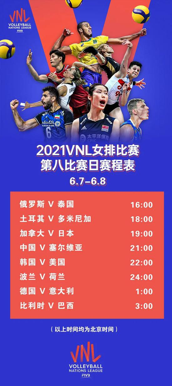 *2021VNL女排第八比赛日赛程👆