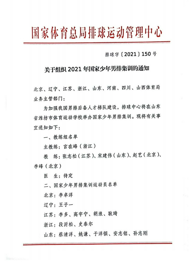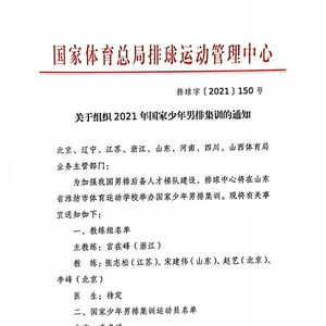 北京时间11月2日消息,中国排协发布了《关于组织2021年国家少年男排集训的通知》。国少男排将由浙江青年男排主帅宫在峰担任主教练,共有来自北京、辽宁等8支球队的16名选手入围大名单,其中14人将参与集训。