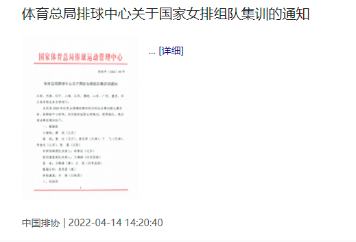根据国家体育总局排球运动管理中心发布的通知,入围新一届中国女排集训队的20名运动员将于4月16日赴福建漳州体育训练基地报到。通知全文如下图所示: