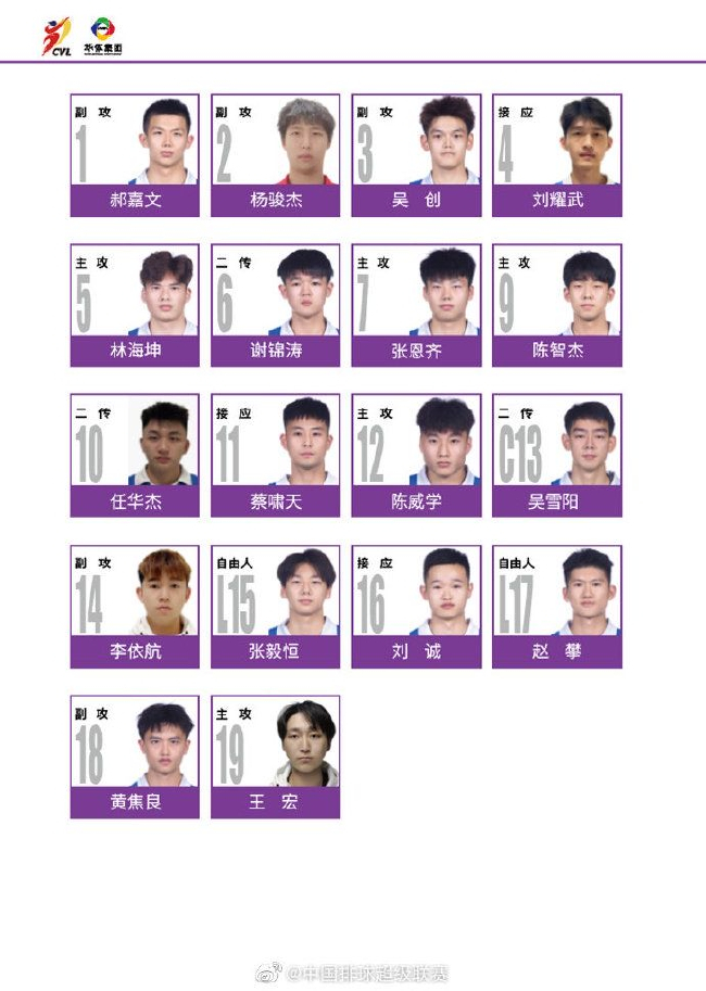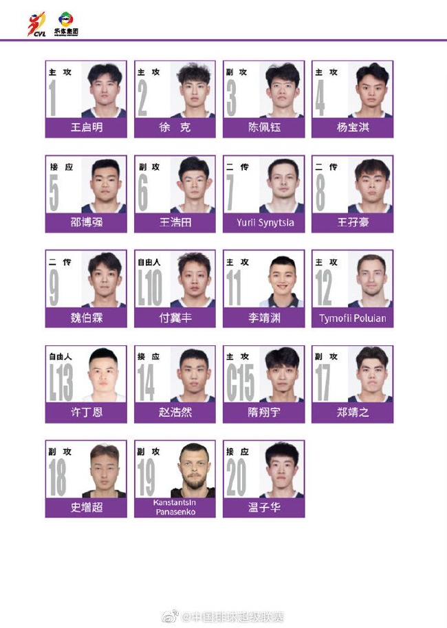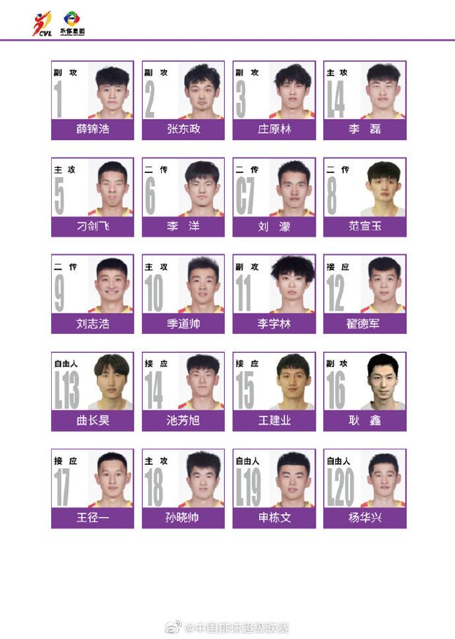 4。 山东儒辰男排20人大名单
