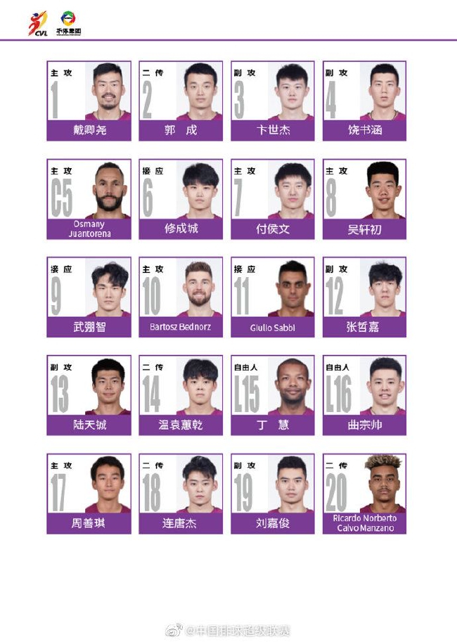 1。 上海光明男排20人大名单