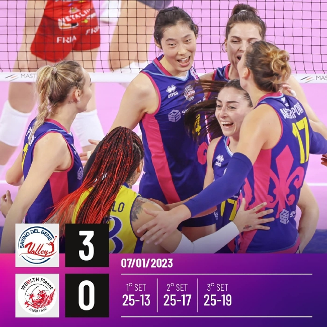与排名第12的佩鲁贾交手,斯坎迪奇女排先发派出主攻朱婷(中国)、皮耶特里尼,副攻贝里恩(荷兰)、阿尔贝蒂,接应安特罗波娃(俄罗斯),二传I-迪尤里奥和自由人卡斯蒂略(多米尼加)。斯坎迪奇在发扣拦3个主动得分环节全面占优,3-0轻松闯关。