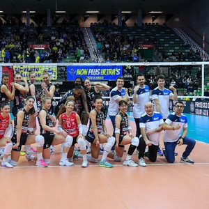 主场与同样有望争夺小组第一的热舒夫交手,科内利亚诺首发派出主攻朱婷(中国)、加比(巴西),副攻法尔、卢比安,接应哈克(瑞典),二传沃沃什(波兰)和自由人德吉纳罗。技高一筹的科内利亚诺女排3-0轻取对手锁定小组第一。