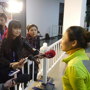 命运就是如此奇妙。2012年在同一座场馆举行的短道速滑上海世锦赛上,戴着头盔、身穿连体防护运动服的刘秋宏如一道红色闪电,携手范可新、孔雪和李坚柔帮助中国队勇夺女子3000米接力冠军;三年后,刘秋宏成了可以在看台欣赏比赛的观众,成了可以近距离采访运动员的记者。