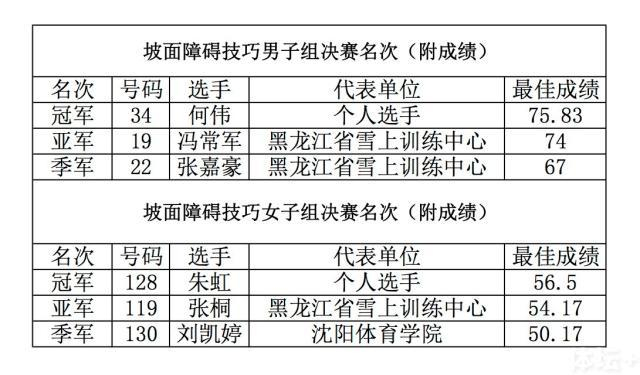 比赛首日进行单板滑雪坡面障碍技巧项目,参赛经验更为丰富的个人滑手表现出色,何伟与朱虹分别取得男子组和女子组的冠军,国内的老牌强队黑龙江省队展现出强大的整体实力,获得两亚一季的好成绩。