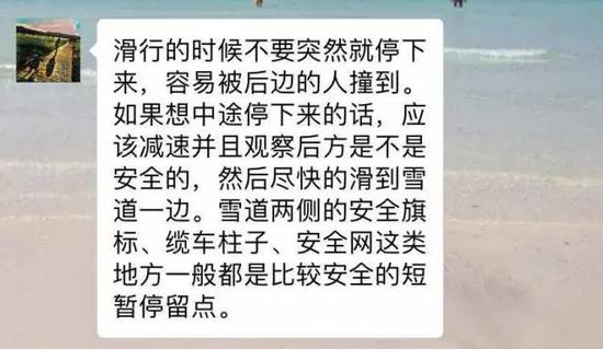 小编说:不要停留在雪道中间,雪道的两边相对安全!