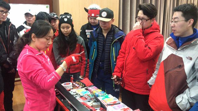 上午的滑行表演及丰富多彩的寻宝活动结束后,没有来一场DAY DAY UP的培训,怎么对得起Q雪上高科技公司这么一个美誉!下午一场由双国际健将做的免费打蜡及修板培训,抬抬B格还是要滴。接下来两个月北京、崇礼、黑龙江、吉林各大雪场的搓板科技慈善巡回培训可有的闹腾了!