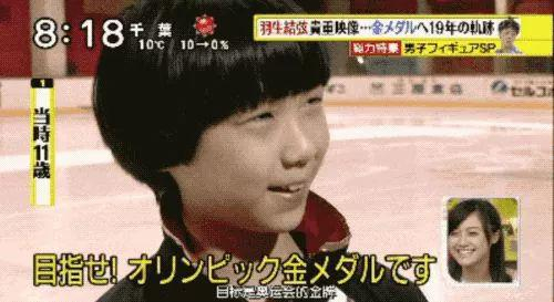 一个广为人知的桥段是,在11岁接受采访时,留着偶像、俄罗斯“冰上皇帝”普鲁申科同款发型的羽生结弦,曾表示“普鲁申科就是花样滑冰界的神”,而他也略微羞涩又带着笃定地说出了自己的目标:“我的目标是拿到奥运会金牌!”