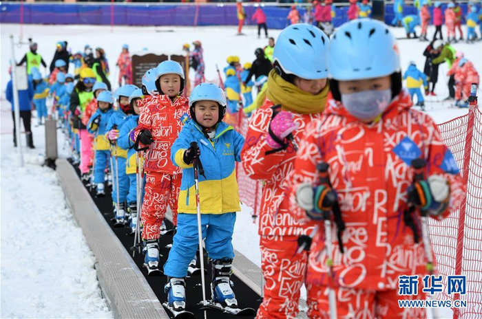 当日,甘肃省兰州市安宁区阳光小学和临夏回族自治州永靖县刘家峡川北小学分别组织百余名小学生走出校园,来到学校附近的凤凰岭滑雪场体验冰雪运动的乐趣。
