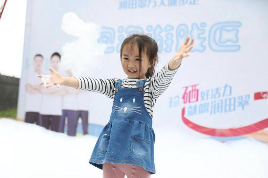 在润田翠万人健步走现场还设置有各类特色互动区,现场还准备了多种趣味互动区,解锁不一样的欢乐时光。时下热门网红泡泡区,一秒找回儿时的纯真快乐,线下照片打印机为你珍藏这一刻的幸福时光,更有魔鬼身材检测区、摸高互动区为欢乐赋能,让活力加倍。