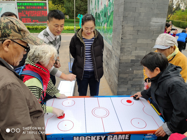 本次社区推广活动形式多样,除了冰雪健身操的教学外,还设置了趣味合影板和冰球桌游。居民们积极踊跃的在合影板前拍照留念,纪念这次独特的冰雪文化体验活动。并在工作人员的指导下,展开了冰球“竞技”,在游戏中感受冰雪运动的魅力,也促进了社区居民感情的提升。