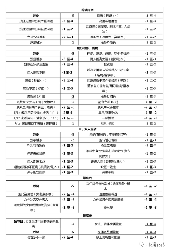 5。起跳差或者偷周。例如,点冰跳压全刃起跳,Toe-Axel,或者在起跳时冰上有过度的旋转。GOE将-1至-3。