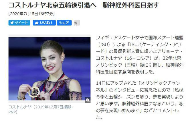 北京时间7月15日,俄罗斯选手科斯托娜娅近日表示在北京冬奥会之后,自己将以脑神经外科医生为目标。