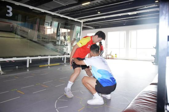 走近体能训练区,20多名小队员们穿着统一的服装,听从教练的指挥有序进行训练。据工作人员介绍,今天原计划是在基地对面的公园进行训练,但由于北京市暴雨预警,便改在室内进行。“我们的训练包括腿部力量、核心力量,以及爆发力、耐力这些滑雪必备的体能。每个队员的训练计划都是根据开营时测量的身体素质指标进行个性化分析后,针对他们的薄弱环节制定的,我们这个体能训练营是希望能在即将到来的上雪训练之前,把他们的体能储备好,他们中有三分之一的队员将参加十四冬单板比赛,这些孩子在训练量上会有所增加。”北京市青少年滑雪队总教练肖雨彤介绍,“未来我们还会对他们进行一些测试,总结训练营的成果,也为下一步的训练做好准备。”