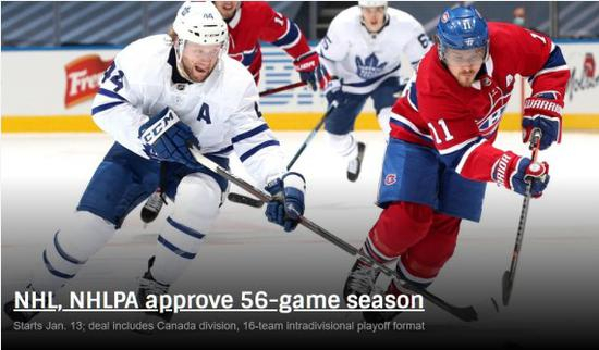 新华社华盛顿12月20日电(记者王集旻)北美职业冰球联赛(NHL)20日正式批准了新赛季启动计划,新赛季将于明年1月13日开打,每支球队常规赛打56场,且只在各自赛区进行常规赛。