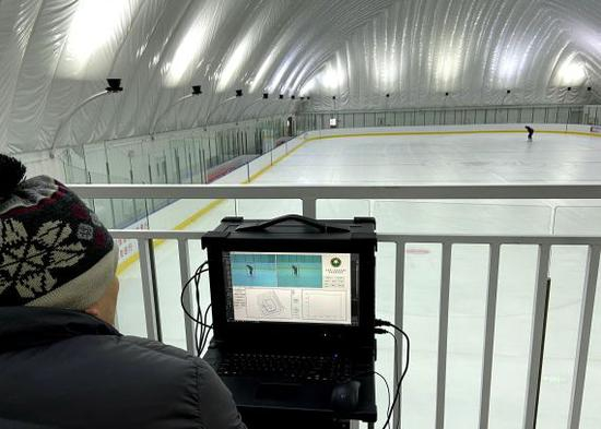 连日来,在首都体育学院的滑冰馆内,北理工光电学院仪器研究所副教授刘明带领团队一遍遍测试设备。看台上竖立着数台图像采集云台变焦设备和超高清相机,刘明盯着4K显示器中正在冰场内滑冰的测试人员图像,操作电脑,采集分析其运动轨迹。