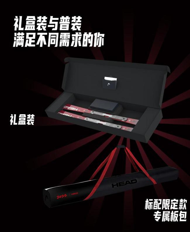 值得一提的是,在滑雪板产品本身设计制作追求极致感受的前提下,HEAD在此款滑雪板的外包装方面也下足了功夫,通过普通装和礼盒装兼顾到了不同消费者的需求。更为惊喜的是,HEAD 2022中国限定款滑雪板在礼盒装中会有特别的彩蛋,有想收藏此款滑雪板的雪友,不妨期待一下。