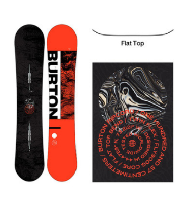 颜值和配置:这里要推荐的是burton最新款。红黑是个不会犯错的基本配色。适合男性。这个小图看不出来,burton产品实物质感的话绝对是杠杠的,吊打网图两条街。根据官网信息,这是一个挤压底板+单向板+flat top的版型。配置明显也是新手配置。唯一要小心的是,单向板在平花进阶,反脚练习的时候可能不太友好,然后flat top这个版型的话可能更加适合雪质比较好的雪场。