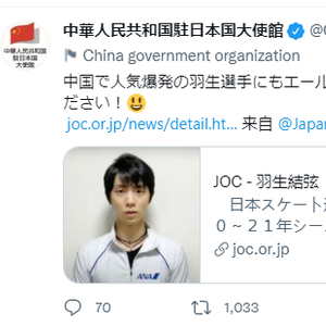 《东京体育报》评论说,中国驻日大使馆的推特,一般平时只有数十条点赞和回复,这次因为羽生的原因超过了2000,这显示出了“柚子”在中国的巨大人气。