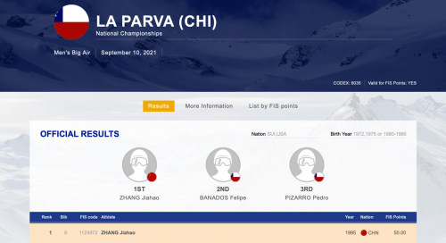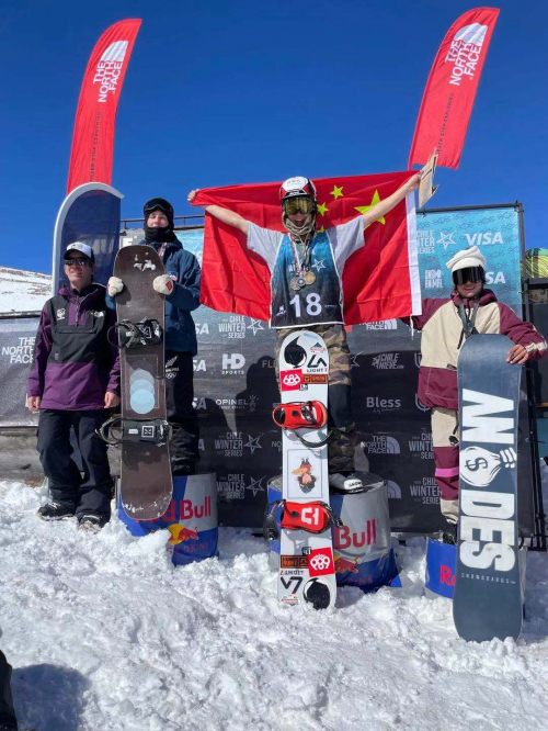 在刚刚结束的9月8日-9日为期两天的国际滑雪联合会FIS系列积分赛智利站比赛暨智利滑雪锦标赛中,身披五星红旗的中国单板滑雪运动员张嘉豪站上了领奖台,他也是本次智利滑雪锦标赛中唯一的中国选手。张嘉豪在本次比赛中获得了单板滑雪大跳台金牌,单板坡面障碍技巧银牌和其他两个项目的铜牌。