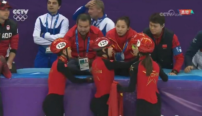 比赛是在2018年2月20日,中国女队以第二名的成绩冲线。但是,裁判通过回放录像,判罚中国队和加拿大队犯规,双双取消成绩。
