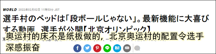 此前,日媒The digest也发文谈及此事,其引用美媒的话指出,“(北京奥运村的床)让曾参加东京奥运会的运动员羡慕不已。”