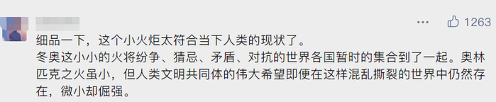 看完这个象征意义高远的点火仪式,有网友评价,“这个小火炬太符合当下人类的现状了。”