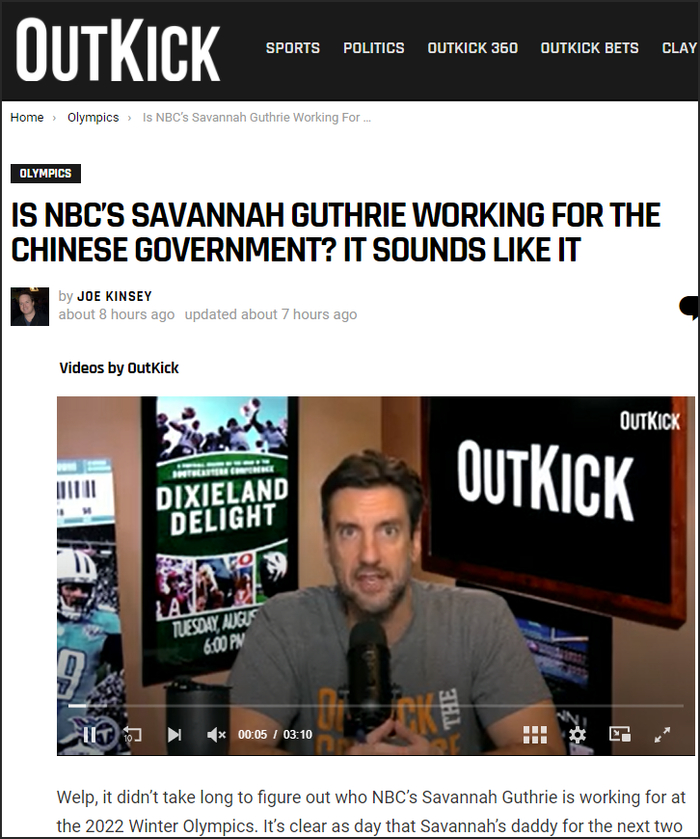 更有甚者,由美国右翼媒体人克莱·塔维斯(Clay Travis)创办的体育新闻网OutKick夸张地说“格思里为中国政府工作吗?听起来是的”。