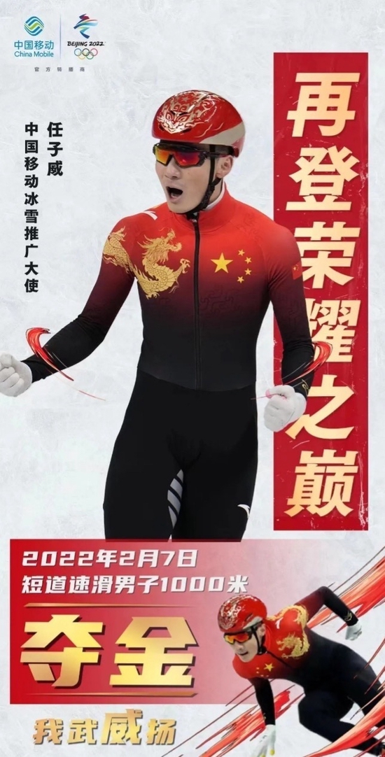 2月7日,任子威赢得短道速滑男子1000米金牌,李文龙获得银牌。中国移动咪咕视频直播间解说席上的短道速滑女王——王濛再次上演超燃、超有趣的激情解说,与奋勇争先的冰雪健儿一同构成2022冰雪盛会的靓丽风景线。