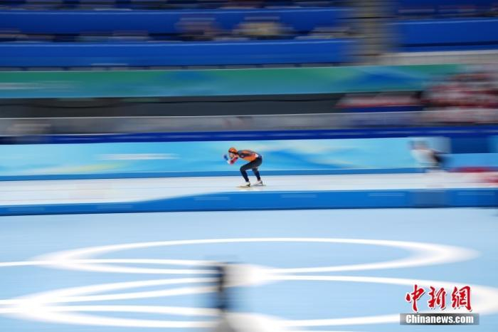 2月8日,北京冬奥会速度滑冰男子1500米比赛在国家速滑馆进行,比赛中荷兰选手托马斯·克罗尔、凯尔·内斯先后刷新奥运纪录,最终将纪录定格在1分43秒21,而凯尔·内斯也获得该项目冠军。图为凯尔·内斯在比赛中。中新社记者 崔楠 摄