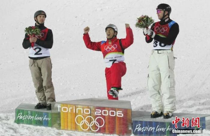 资料图:2006年2月24日,韩晓鹏在都灵冬奥会自由式滑雪空中技巧男子比赛中,为中国夺得第一枚雪上项目的金牌,这也是中国男选手首次夺得冬奥会雪上项目金牌。中新社发 武仲林 摄