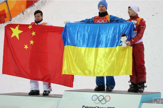 昨晚自由式滑雪男子空中技巧决赛中, 卫冕冠军、乌克兰选手阿布拉缅科获得银牌,也为自己正被全世界瞩目的祖国打破了“奖牌荒”。在最终名次出炉后,他被铜牌得主——俄罗斯奥委会队的伊利亚·布罗夫从身后紧紧抱住,两人共享了摘牌的喜悦。