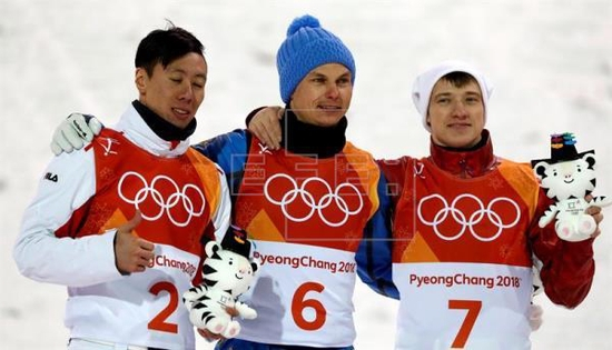 平昌冬奥会,阿布拉缅科(中)和布罗夫(右)分获金、铜牌,贾宗洋(左)获得银牌